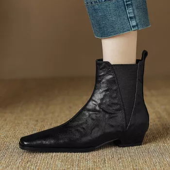 Women’s Genuine Leather Square Toe Ankle Boots with Zip