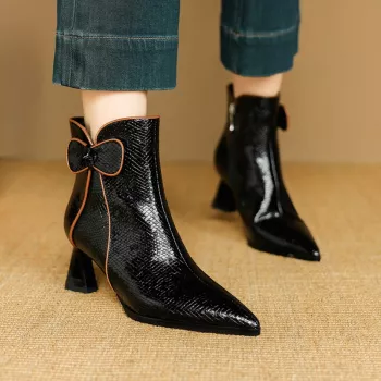 Winter Women Boots Pointed Toe High Heel Zip Boots with Bow-knot