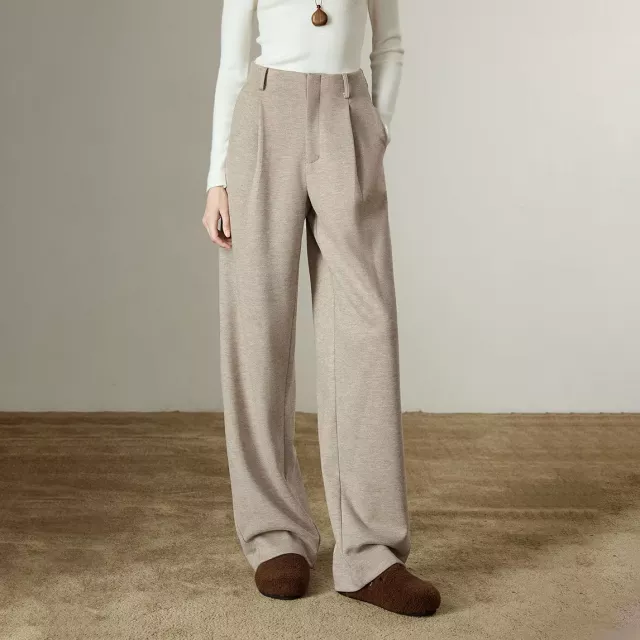 Winter Oatmeal Wide-Leg Banana Pants for Effortless Everyday Style