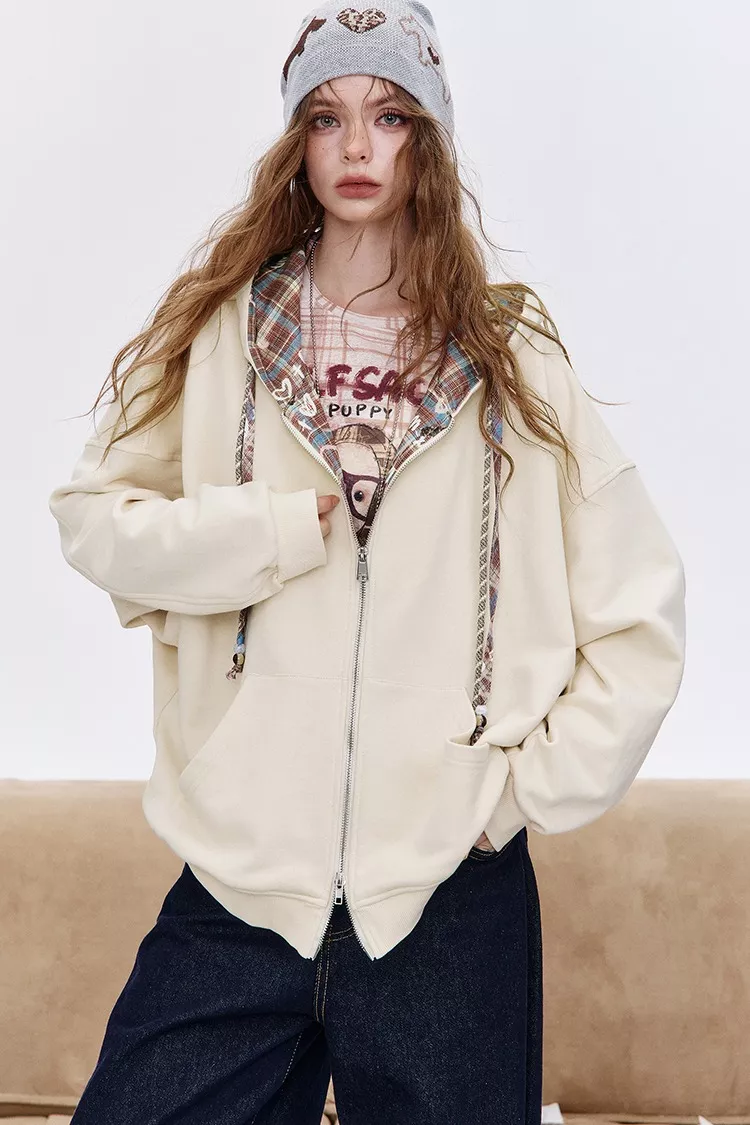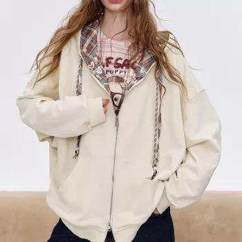Winter Plaid Lined Hooded Zip-Up Jacket for Women