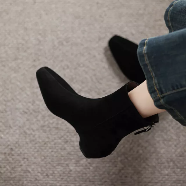 Crafted from high-quality kid suede leather and lined with soft fleece, these boots offer both luxury and practicality. The fleece lining ensures that your feet stay warm and comfortable, while the sturdy TPR sole provides excellent grip and support for long hours of wear. With a square toe design and a 5 cm chunky heel, these boots offer a modern, fashionable silhouette that complements a variety of outfits.